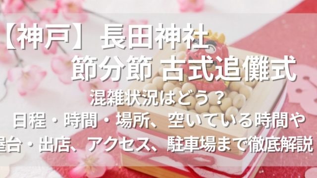 節分【神戸】長田神社 節分節 古式追儺式2025の混雑状況はどう?屋台・出店、アクセス、駐車場、口コミまで徹底解説! この記事では、兵庫県神戸市にある長田神社 節分節 古式追儺式2025の駐車場情報、混雑状況、空いている時間や日程・時間・場所・屋台・出店からアクセス、駐車場、口コミまで分かりやすく解説します。節分