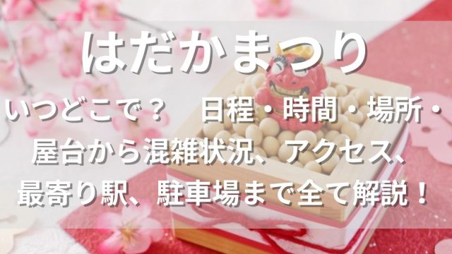 節分【稲沢市国府宮】はだかまつり2025はいつどこで?駐車場、屋台・出店から混雑状況、アクセス、最寄り駅まで全て解説! この記事では愛知県稲沢市国府宮で行われる、はだかまつり2025はいつどこで開催されるのか、日程、時間、場所などの基本情報から屋台、混雑状況、アクセス、最寄り駅、駐車場まで全て分かりやすく解説します。節分