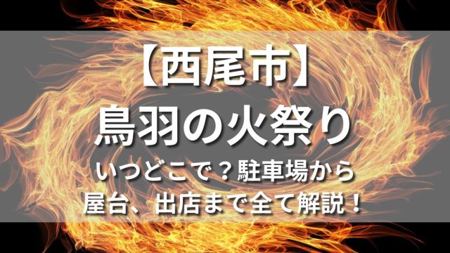 節分【西尾市】鳥羽の火祭り2025はいつどこで?駐車場から屋台、出店まで全て解説! この記事では愛知県西尾市の鳥羽の火祭り2025はいつどこで開催されるのか、日程、時間、場所などの基本情報から屋台、出店、混雑状況、アクセス、最寄り駅、駐車場まで全て分かりやすく解説します。節分